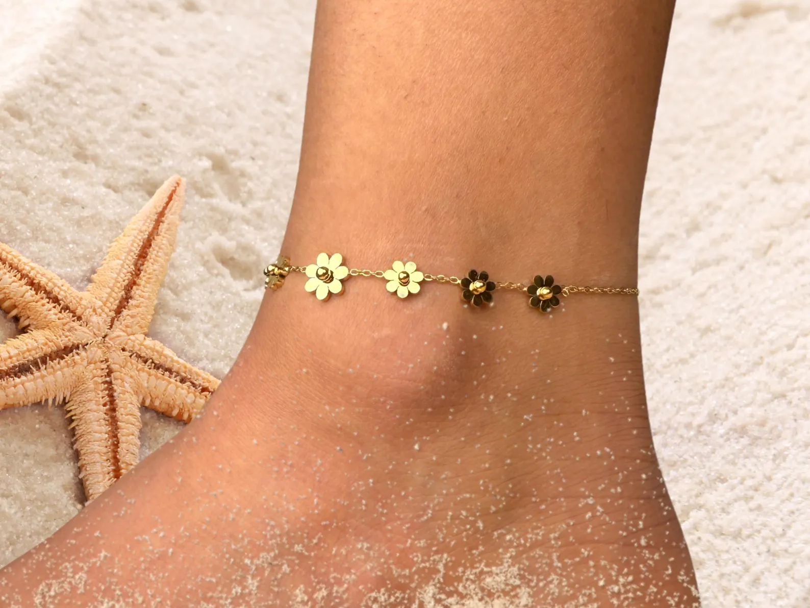 🌸 7 Flower Anklet – Shine with Every Step! 🌸