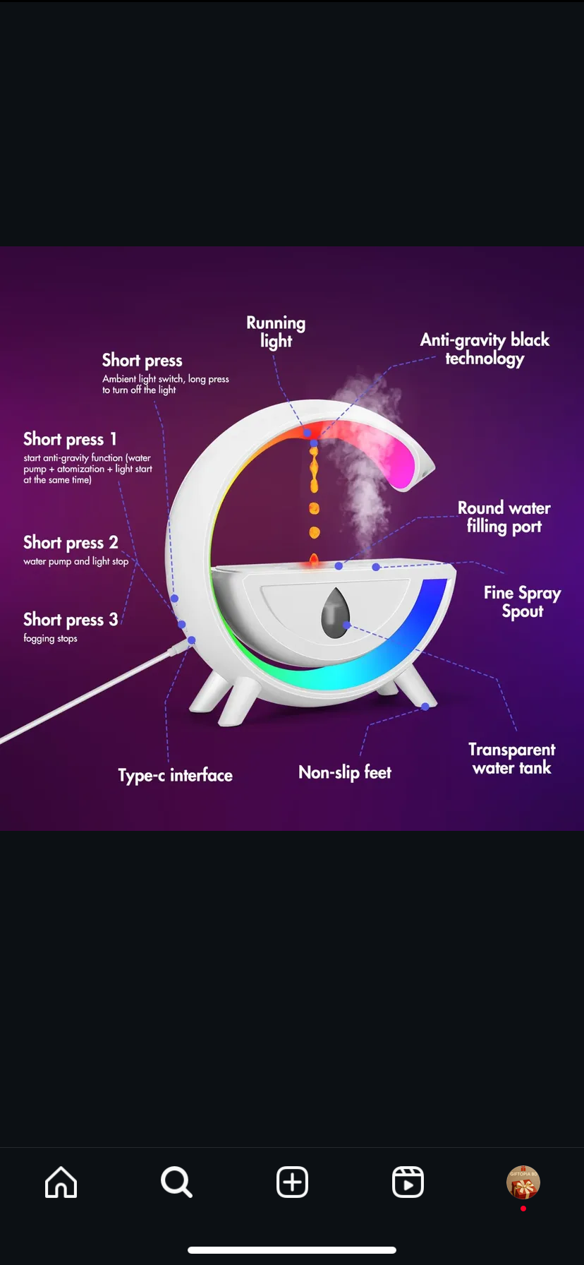 ⭐️⭐️⭐️⭐️⭐️ RGB লাইট, মিস্ট আর ওয়াটার এফেক্ট একসাথে খুব সুন্দর লাগছে। প্রাইস অনুযায়ী ভালো মানের প্রোডাক্ট।