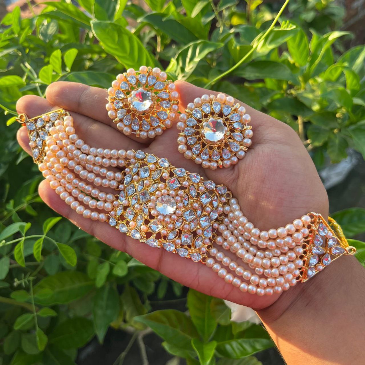 ঝকঝকে AD Stone দিয়ে তৈরি চমৎকার Choker আর matching 2 Earrings – পারফেক্ট Party, Wedding বা Festival Look এর জন্য।