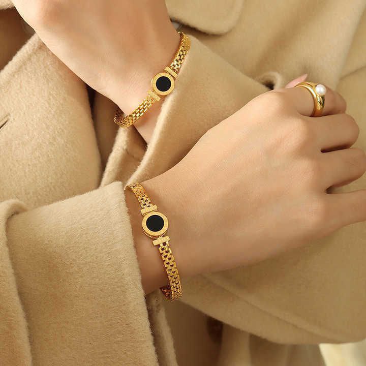 🖤 Fashion Black Acrylic Stainless Steel Bracelet – Roman Numerals Design 🖤