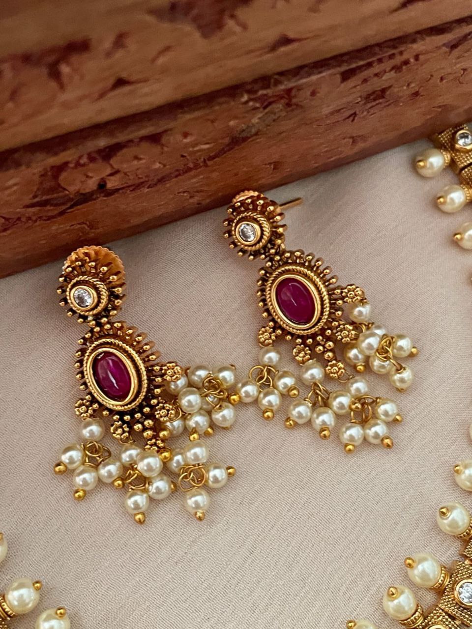 উজ্জ্বল AD স্টোনে সাজানো এই নেকলেস ও ইয়াররিং সেট