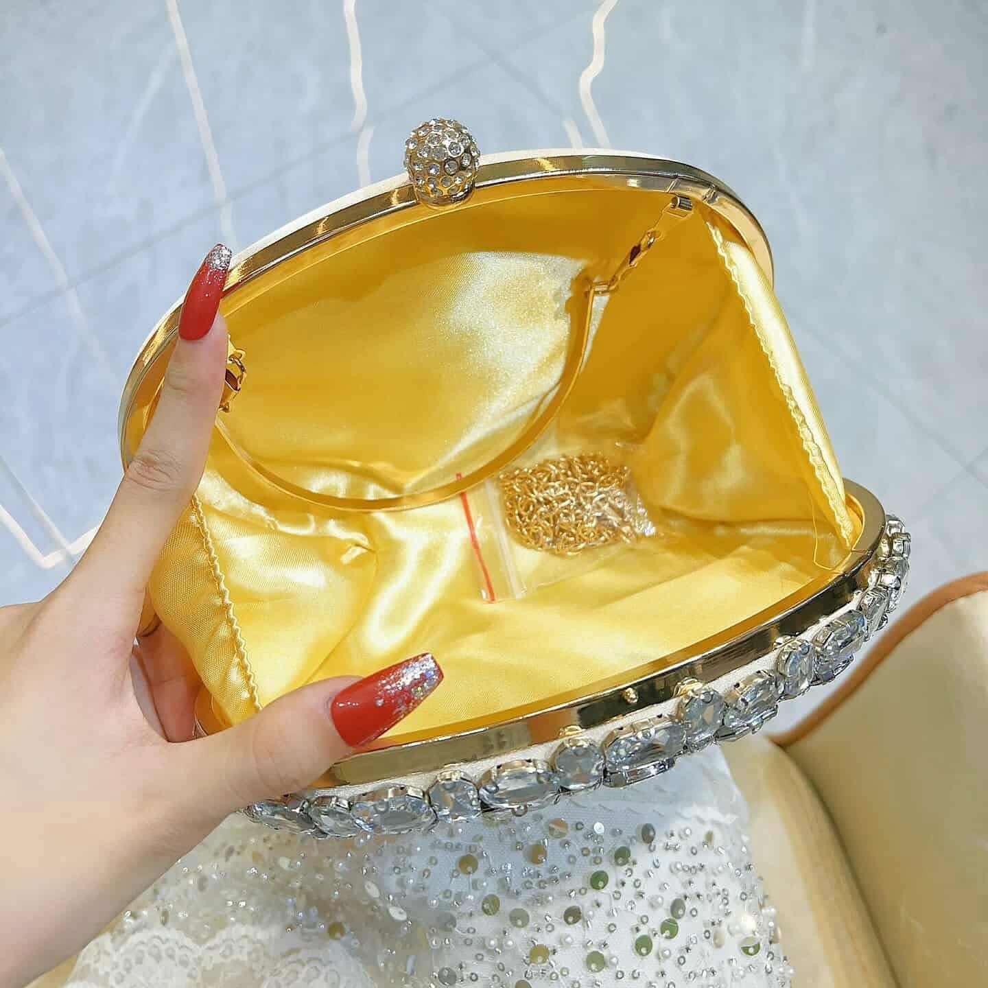 Feature highlights:This luxury diamond rhinestone evening bag is designed for weddings and special occasions, offering a fashionable oval shape with crystal beading. Measuring 18*5*12cm, it combines elegance with functionality.