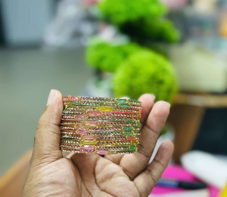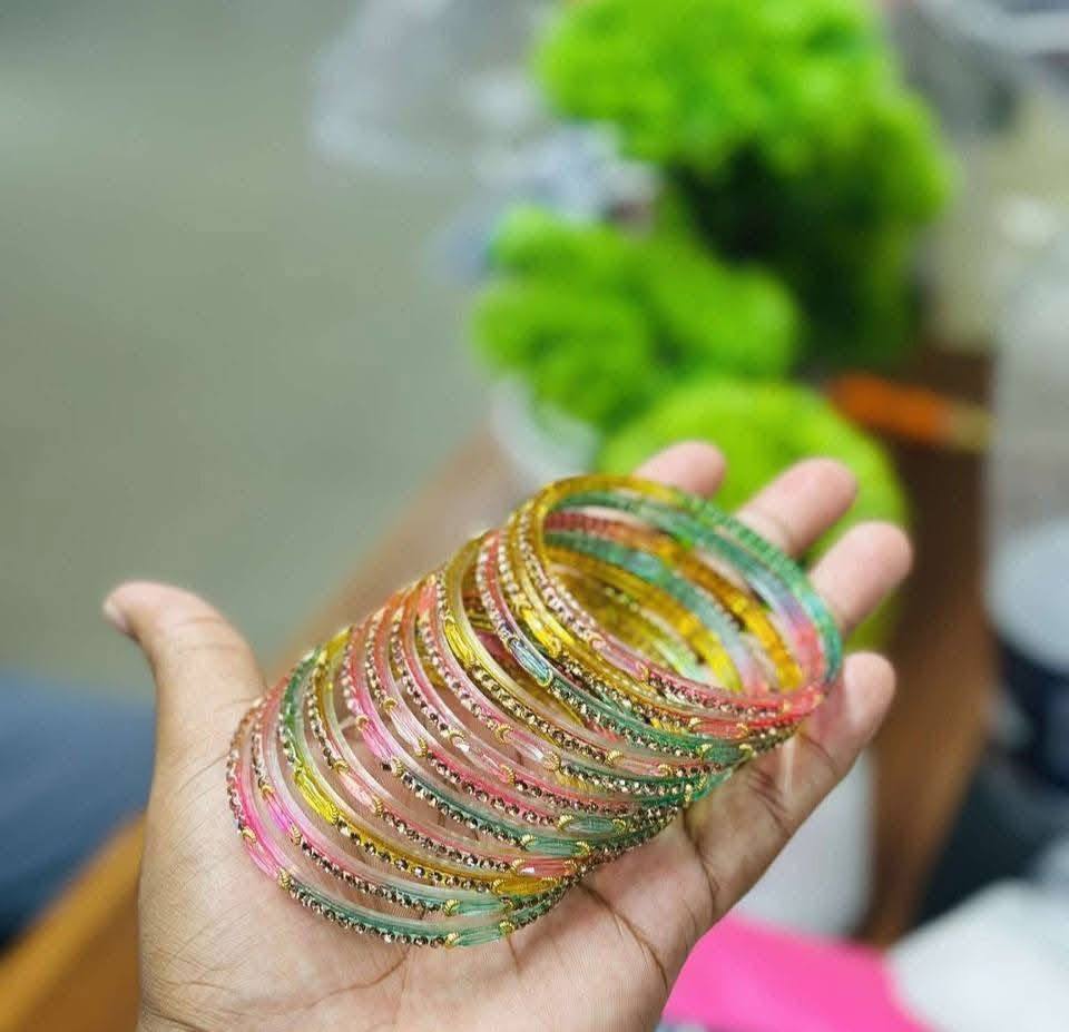 🌧️✨ Raindrop Glass Bangles (12 Pcs)🪷🪔
